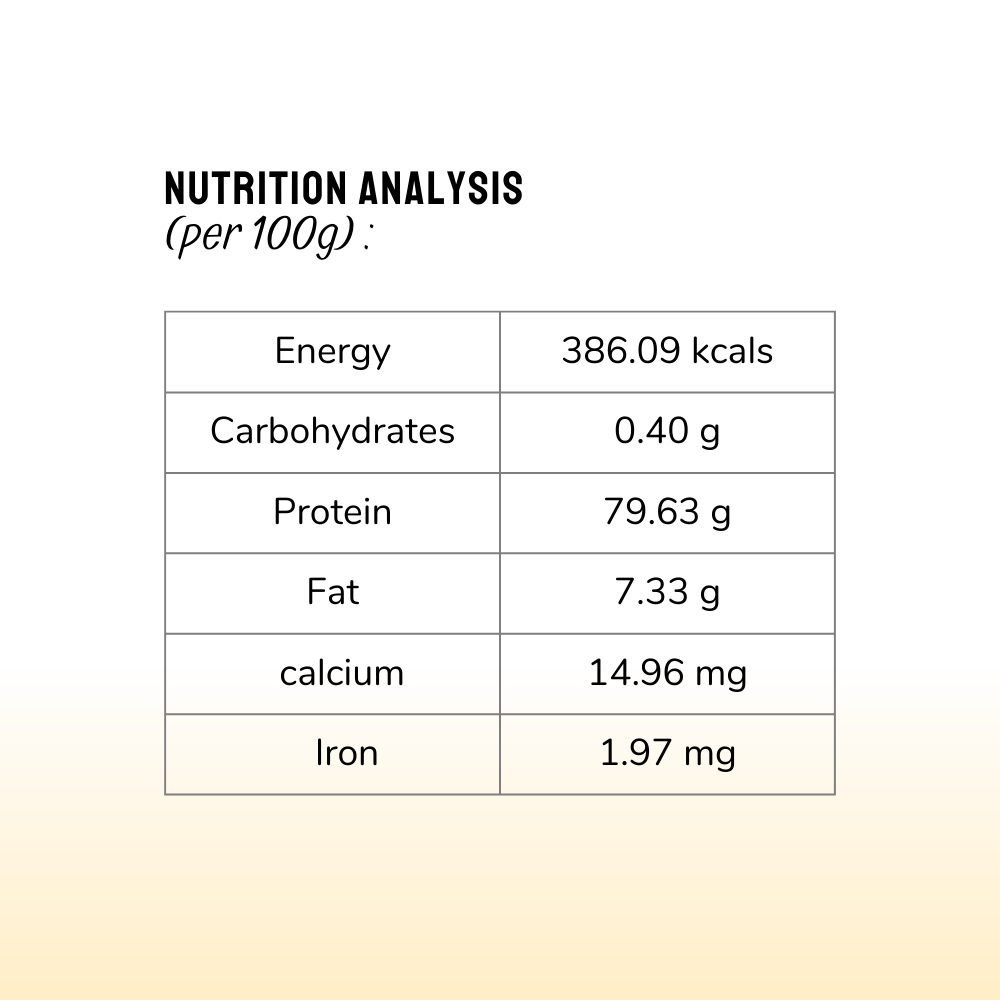 - The product contains an Oxygen Absorber sachet to maintain the freshness of the product. It is not to be eaten. Keep away from children and pets.