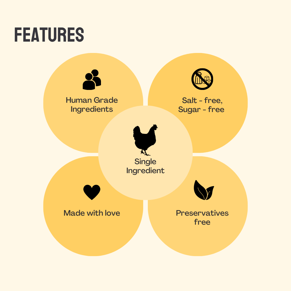 Pure Poultry Perfection: Crafted solely from premium human-grade chicken, our crispy jerky guarantees safety and satisfaction. No compromises, only the finest ingredients for your beloved pet.