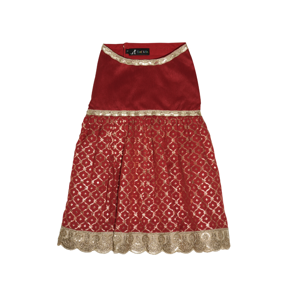 Brocade Lehenga for Dogs – Red & Gold Ethnic Pet Dress | Wedding & Festive Outfit – Floof & Co