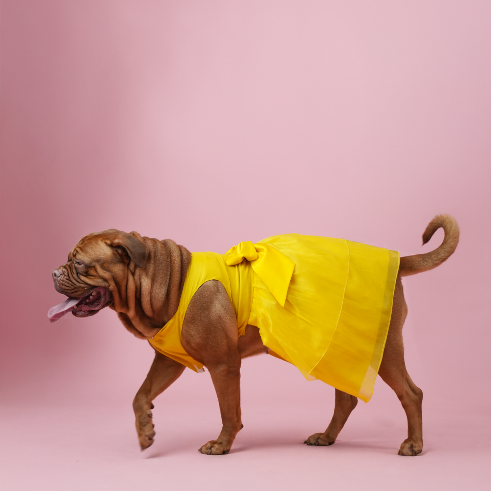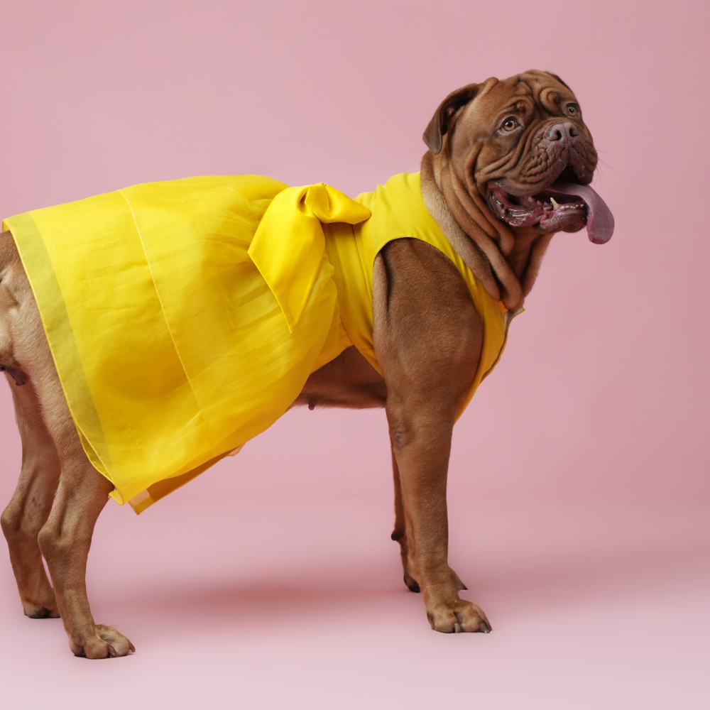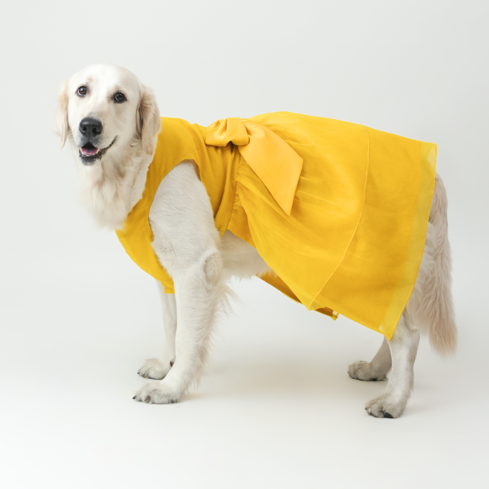 Bright, joyful, and effortlessly elegant — the Yellow Organza Dog Dress for Female Dogs by Floof & Co is designed for festive moments and celebrations. Made from premium lightweight organza, it’s soft, breathable, and perfect for birthday parties, weddings, or photoshoots. The large satin bow adds a designer touch, ensuring your furry girl shines in every picture.