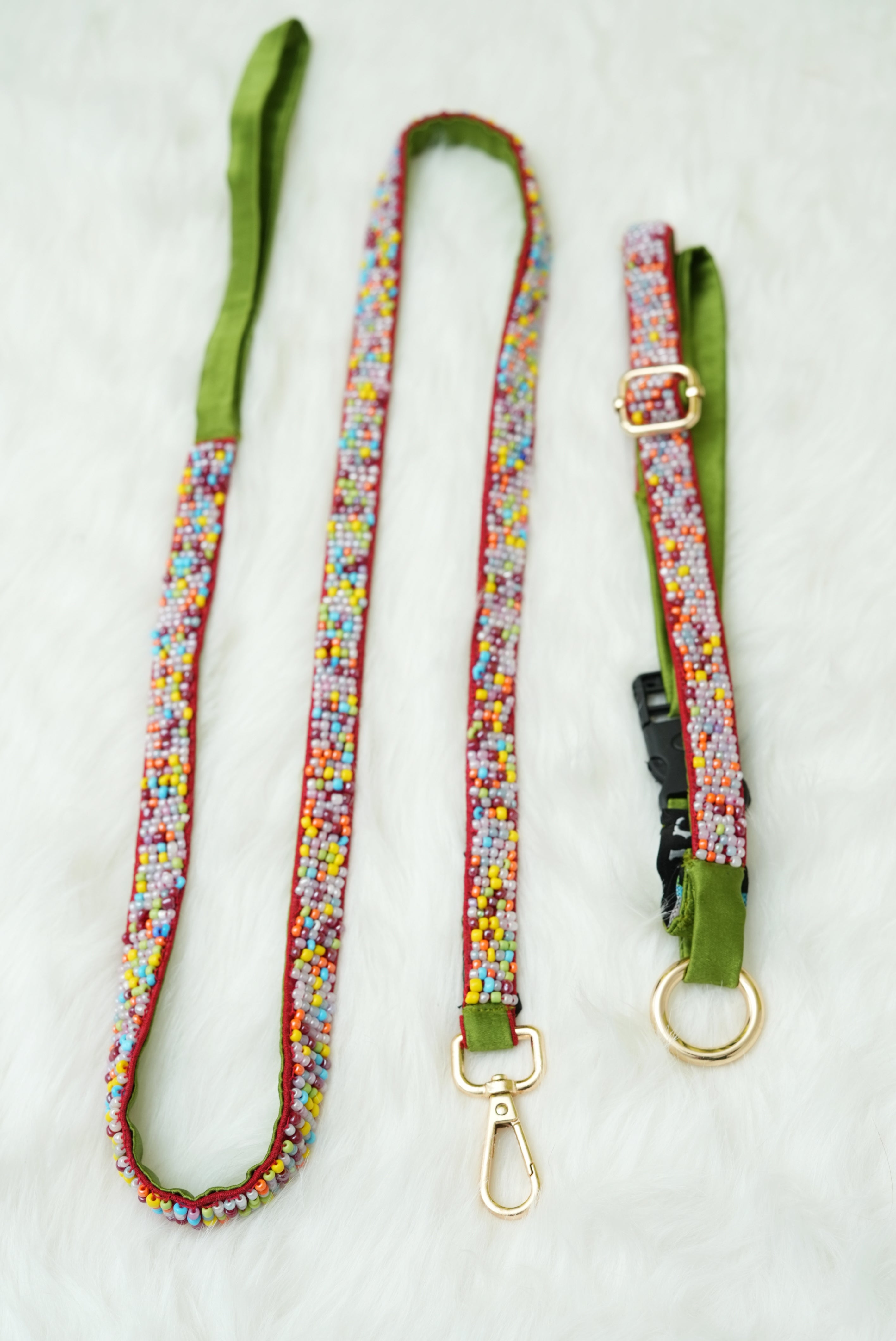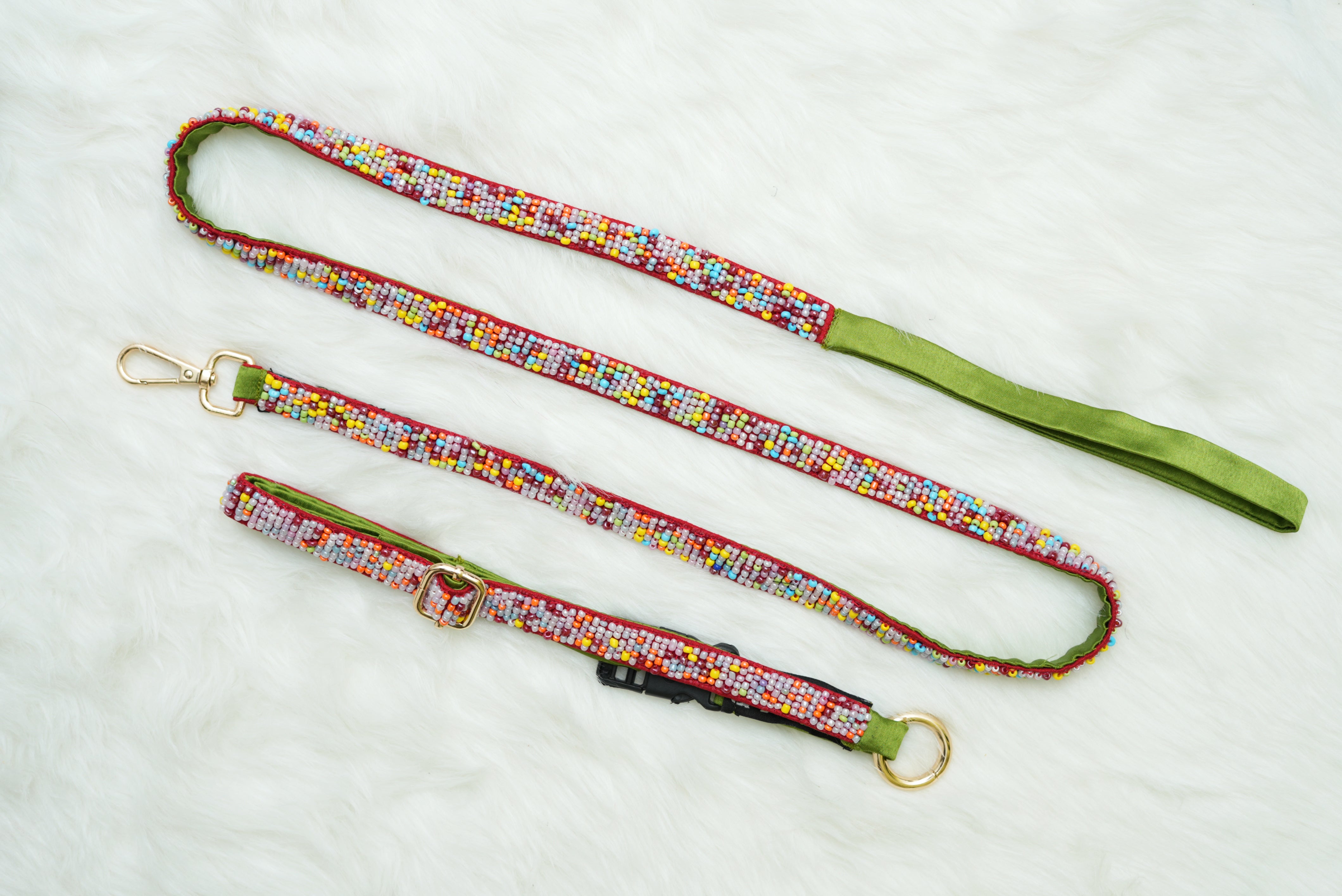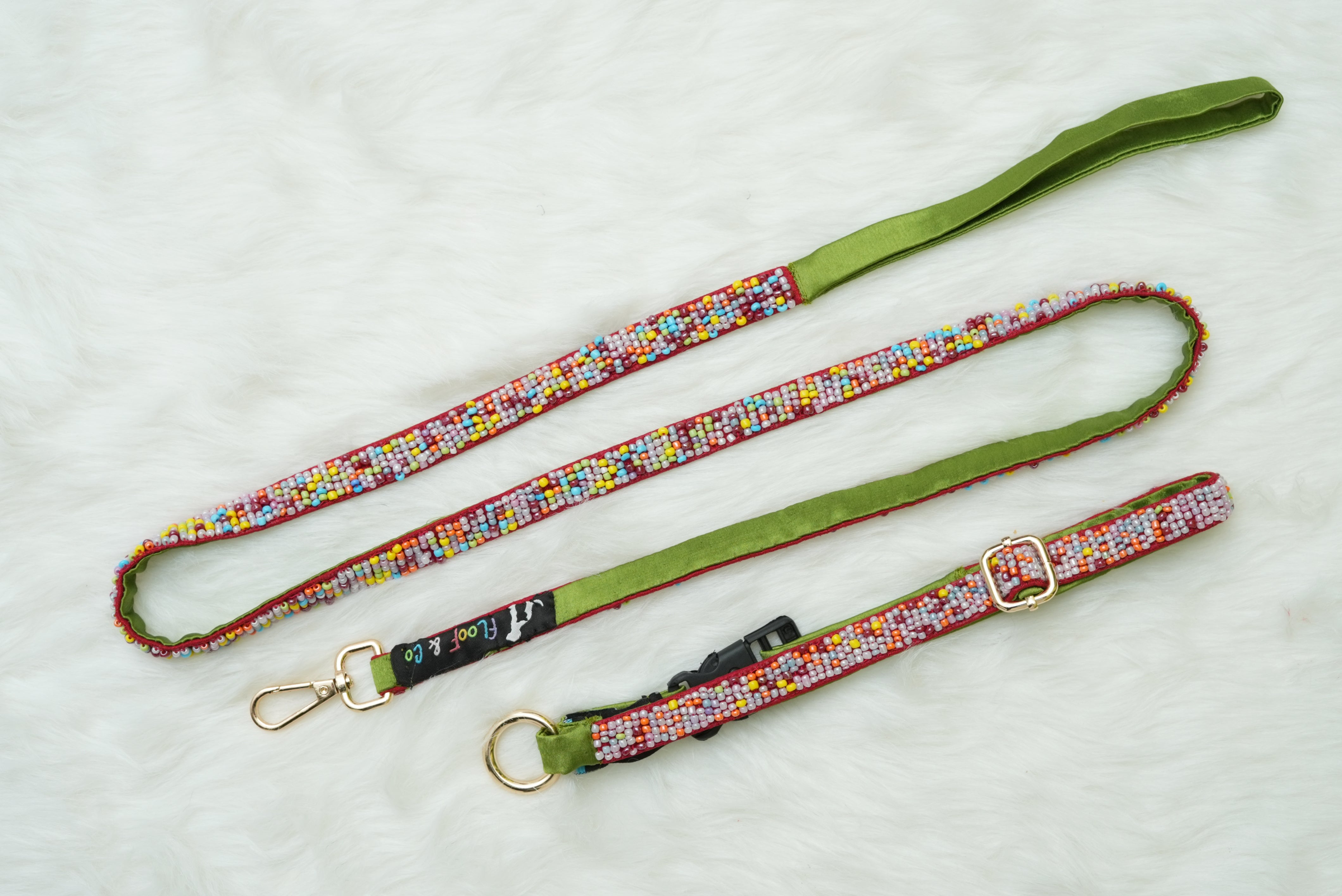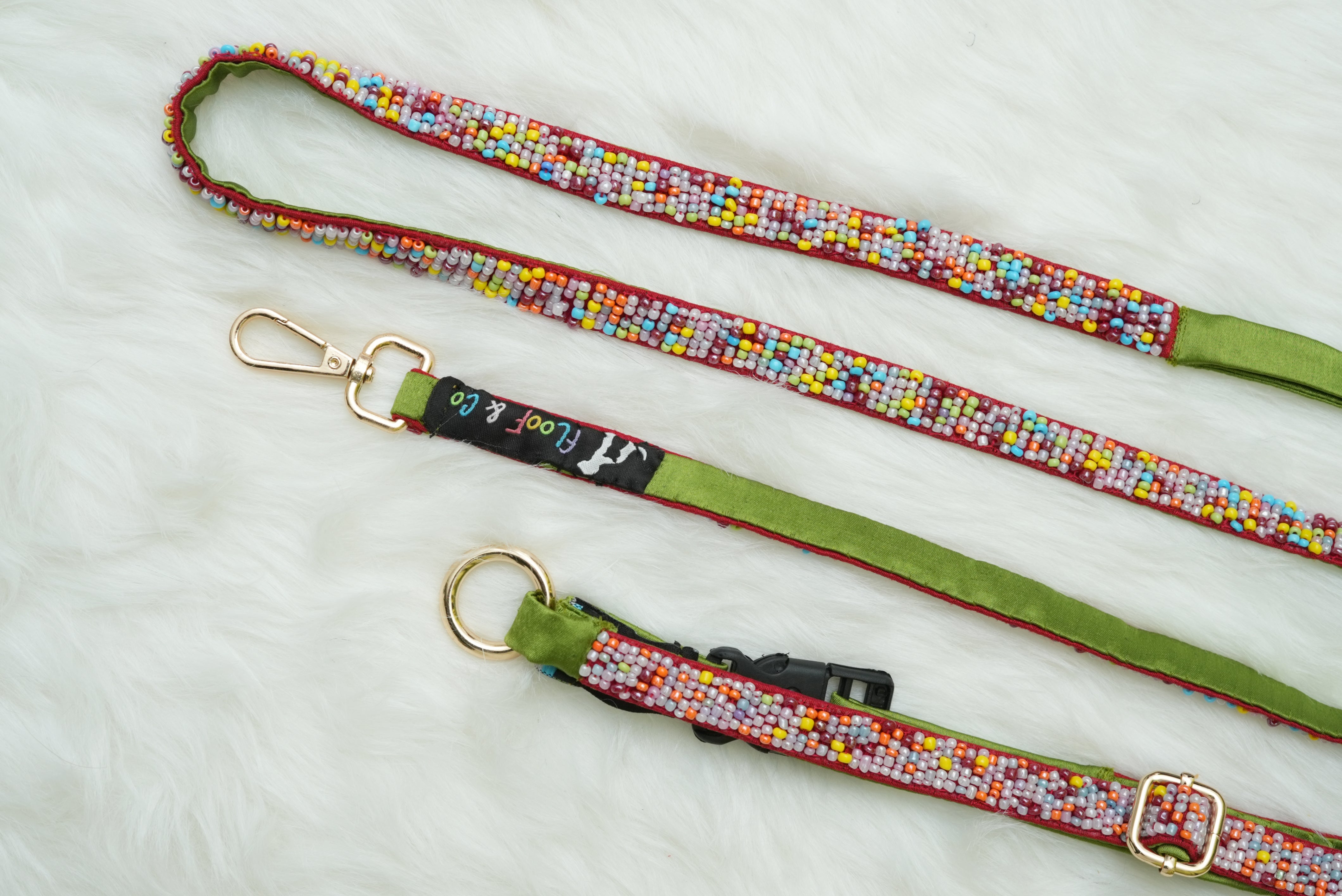 Sprinkles Leash & Collar Red- Floofandco Luxury Premium Dog Leash and Collar for Small and Medium Dogs