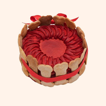 Red Ribbon Bone Cake – Round Dog Cake – Hyderabad