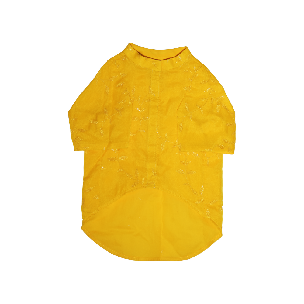 Brighten any celebration with the Floral Print Dog Kurta in Yellow by Floof & Co. Featuring a lively floral pattern with subtle shimmer detailing, this kurta radiates festive joy. Lightweight and breathable, it’s perfect for Haldi, Diwali, or everyday desi style.