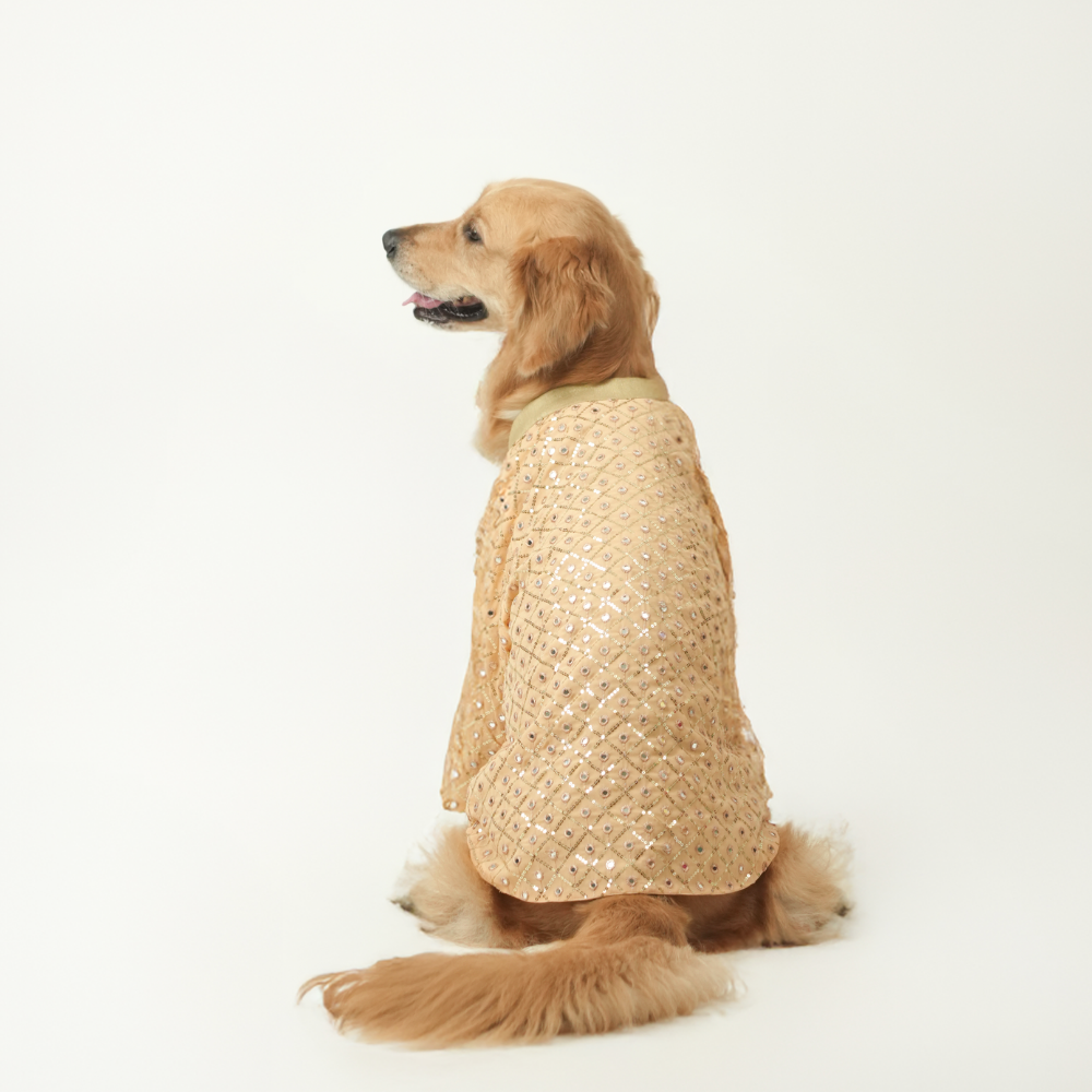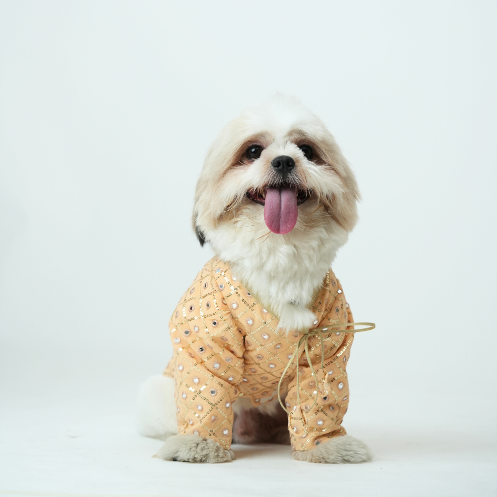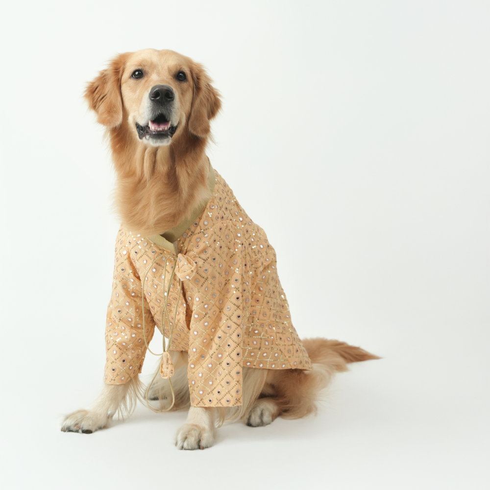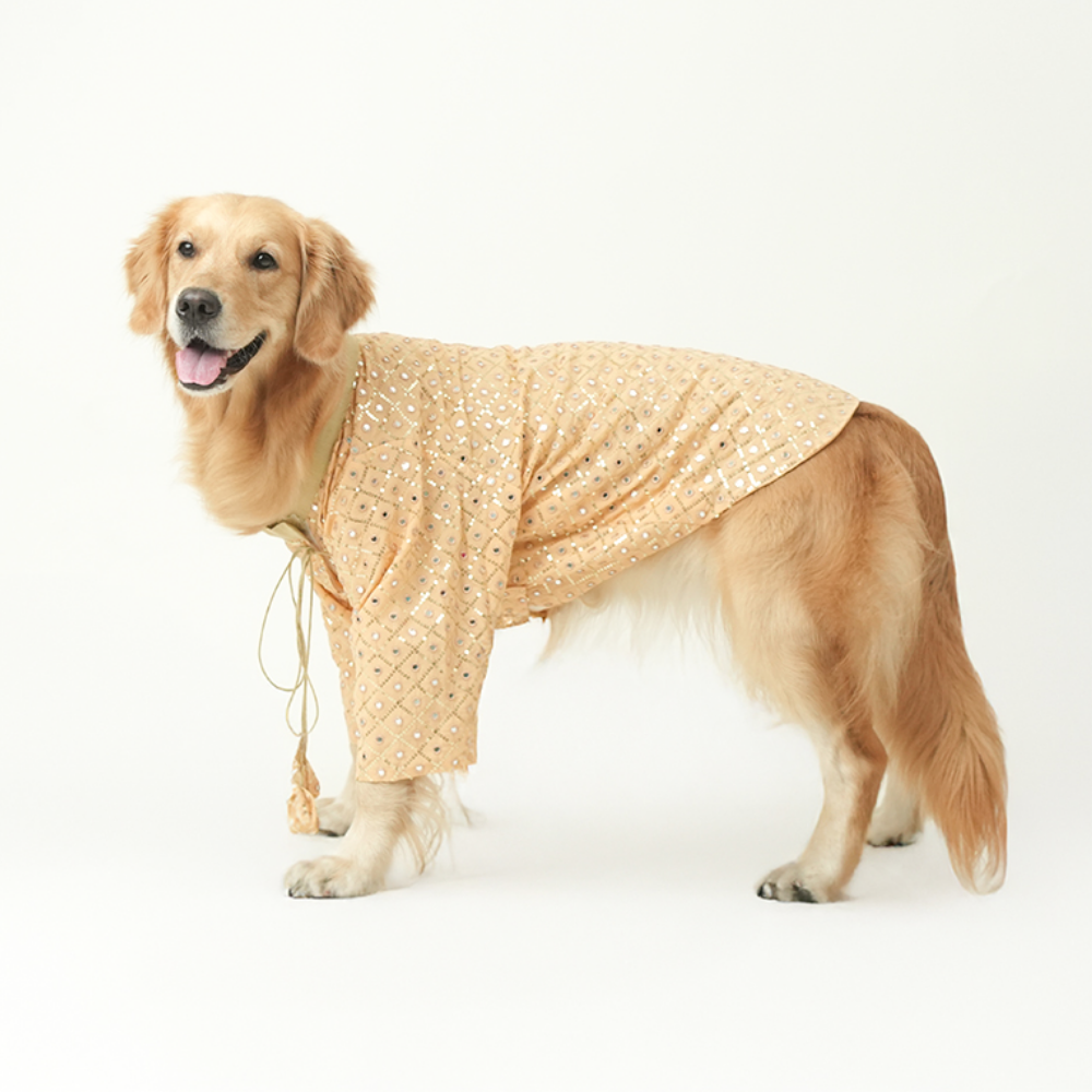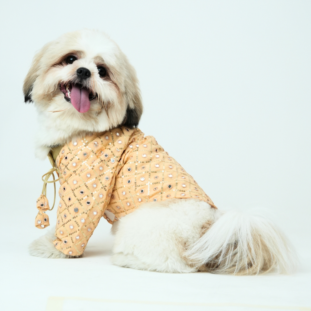 Mirror Sequin Dog Kurta – Peach Traditional Wear for Dogs | Floof & Co