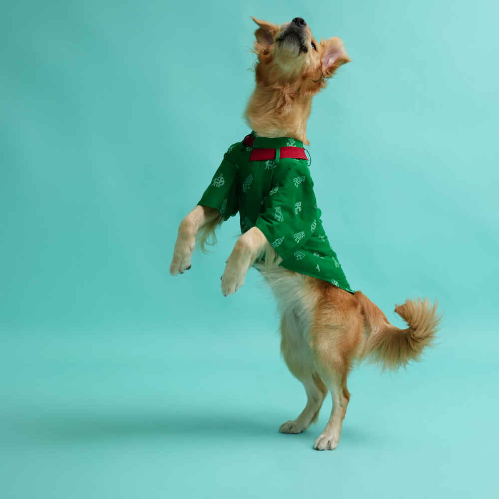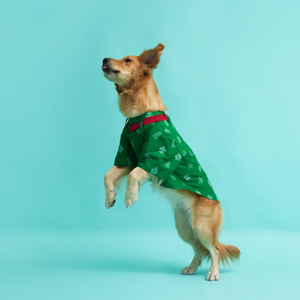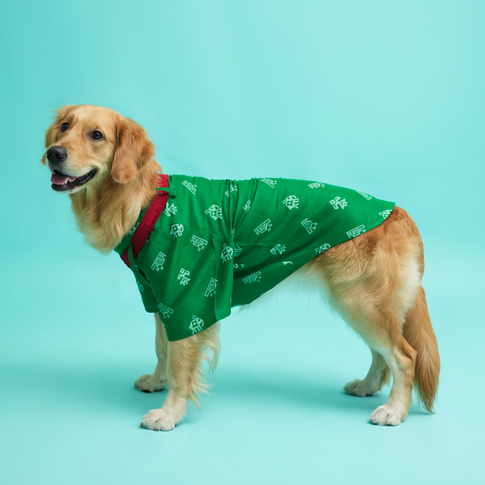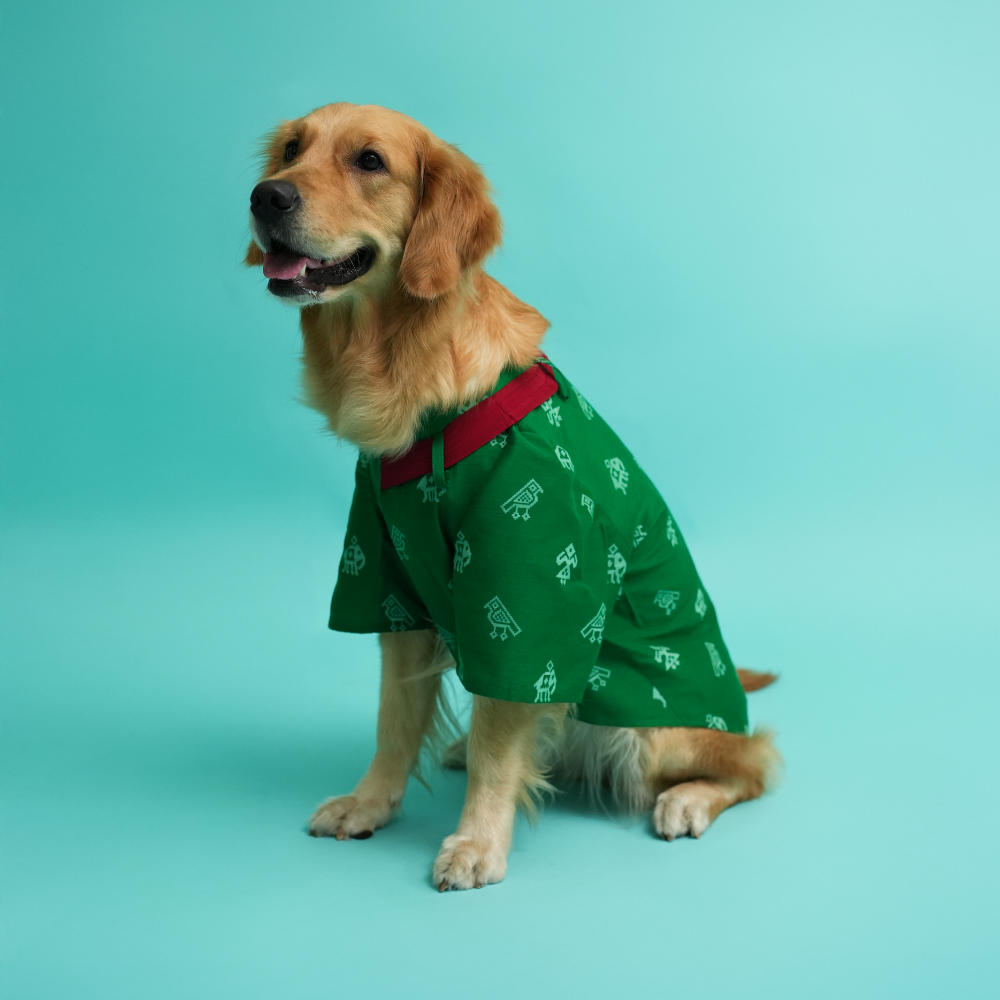 Celebrate Indian tradition with the Patola Print Dog Kurta by Floof & Co. Crafted in premium green cotton with traditional motifs and a smart red collar band, this ethnic kurta is perfect for festive occasions, weddings, or poojas. Give your dog the perfect desi look with comfort and charm.