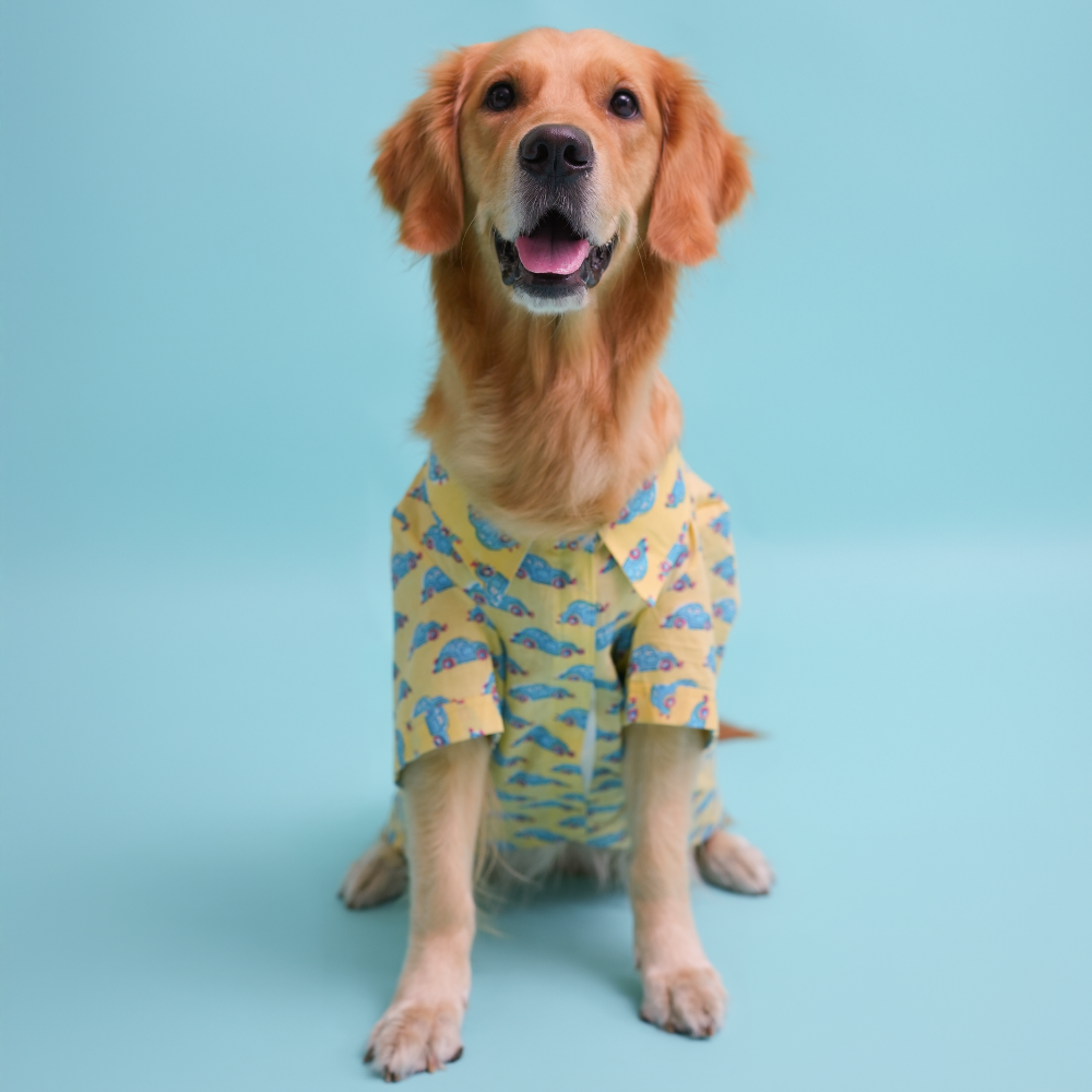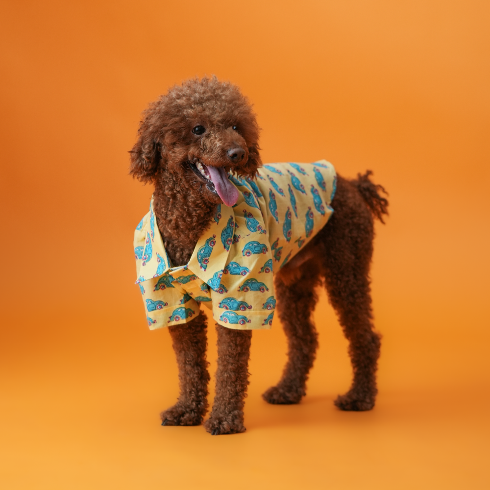 Car Print Dog Shirt – Yellow Cotton Shirt for Dogs | Floof & Co