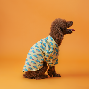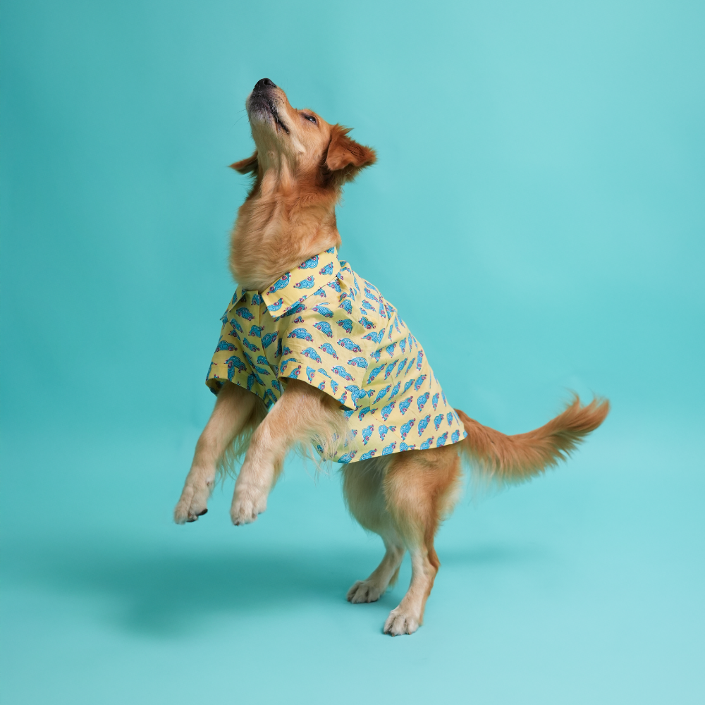Hit the road in style with the Car Print Dog Shirt by Floof & Co. Crafted in soft yellow cotton with vintage car prints, this shirt brings comfort and cuteness together. Ideal for walks, parties, or everyday adventures — designed especially for fashionable male dogs.