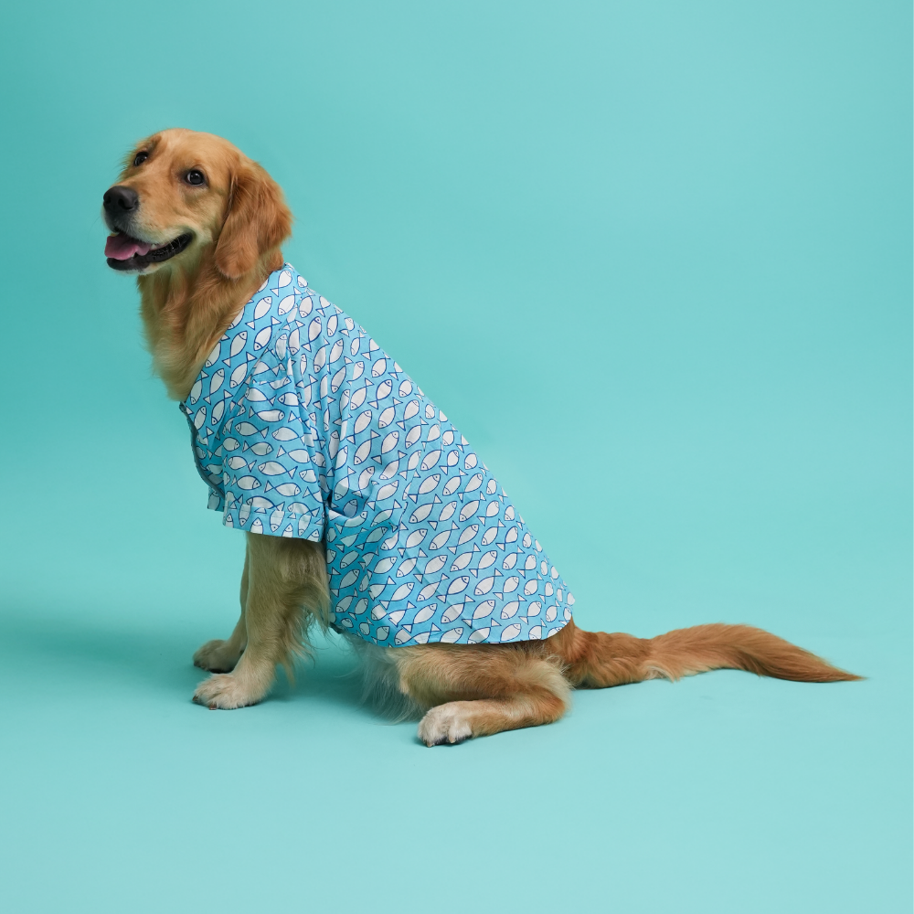 Fish Print Dog Shirt – Sky Blue Casual Shirt for Dogs | Floof & Co