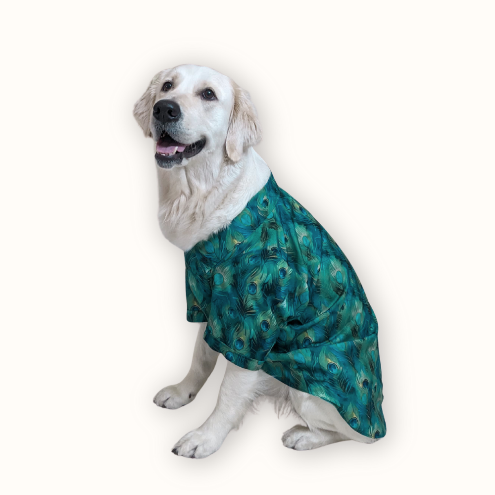 Peacock Print Dog Shirt – Elegant Green Printed Shirt for Dogs | Floof & Co