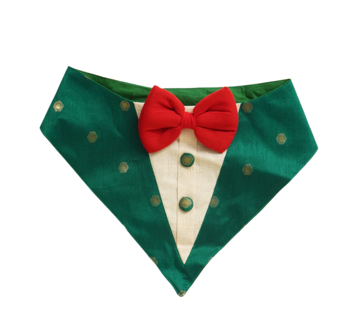 Green Silk Tux Bandana with Red Bow