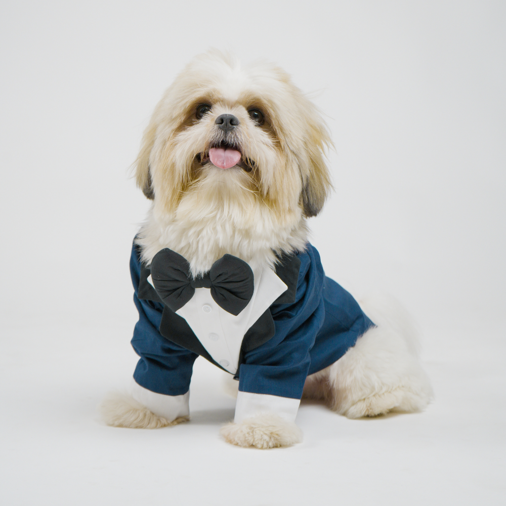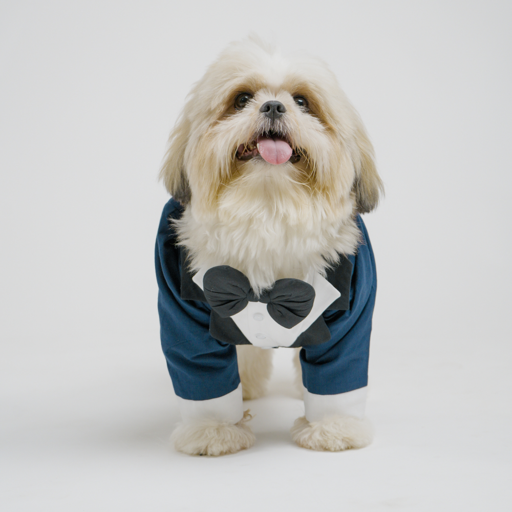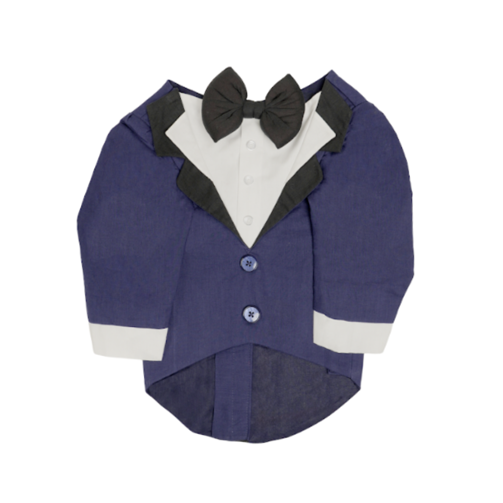 Navy Blue Dog Tuxedo Suit with Bow Tie | Floof & Co