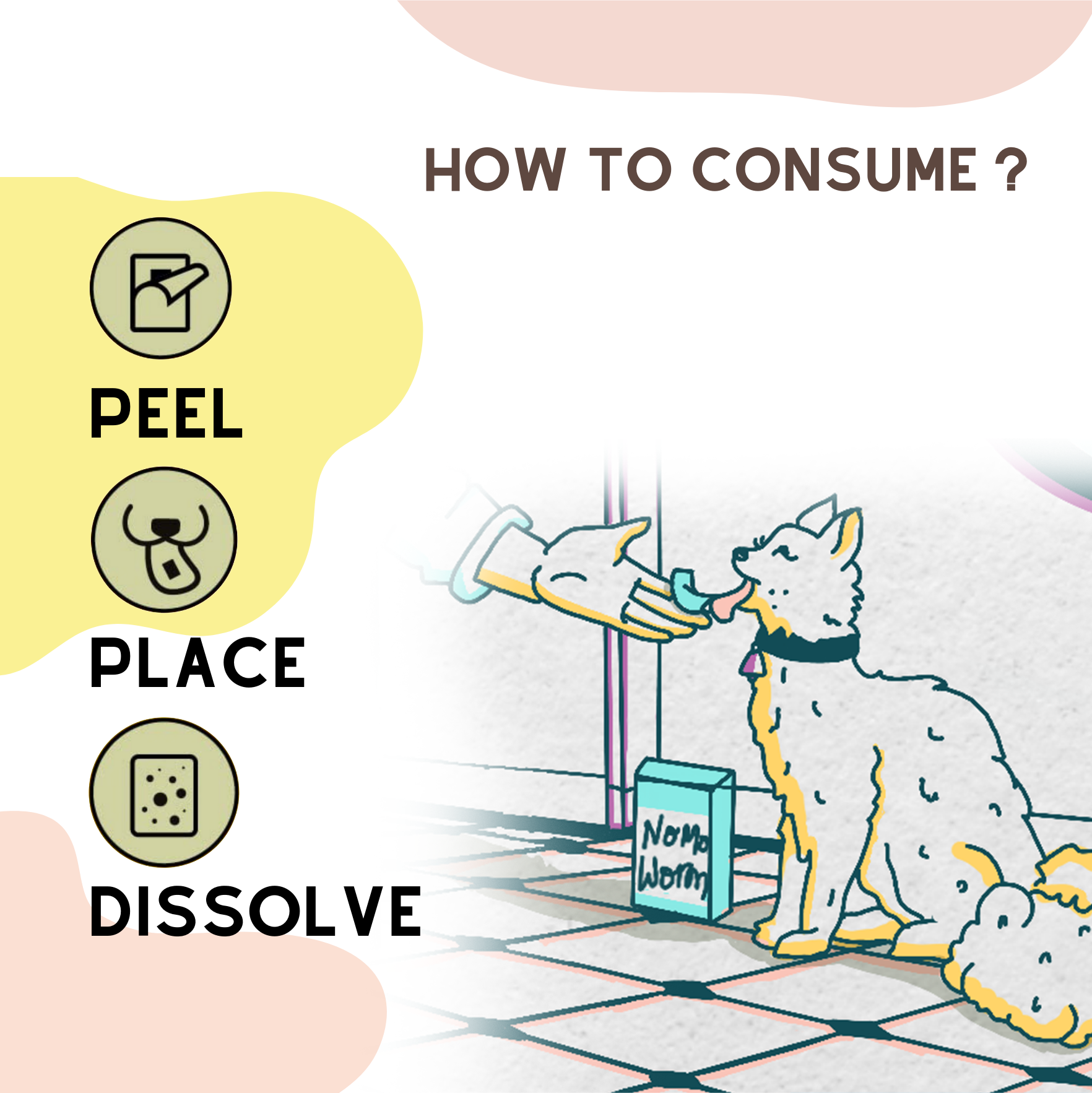 Simply place the dissolvable strip on your pet's tongue and watch as it quickly dissolves and takes effect.
