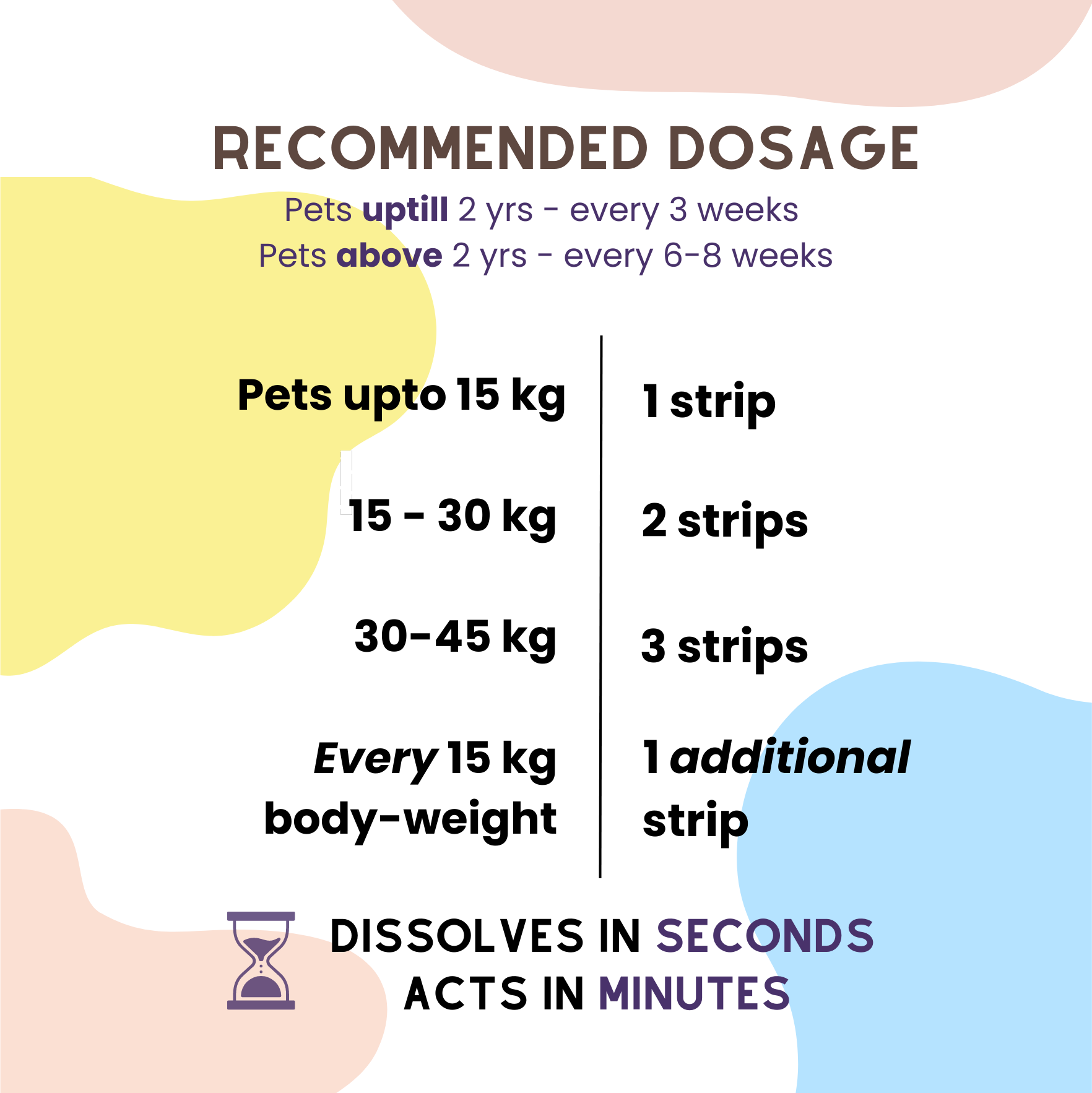 A unique, fast-acting, convenient, vet-approved & all-natural mouth-dissolving strip to keep your pets free from unwanted parasites. These strips target and eliminate common intestinal worms.