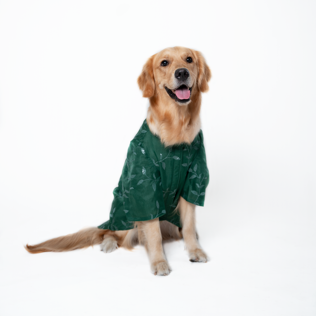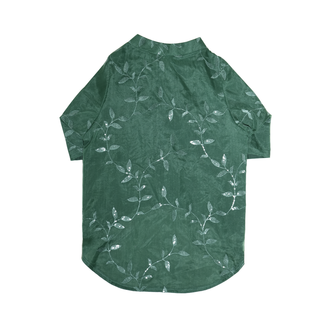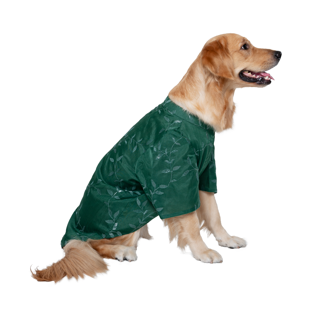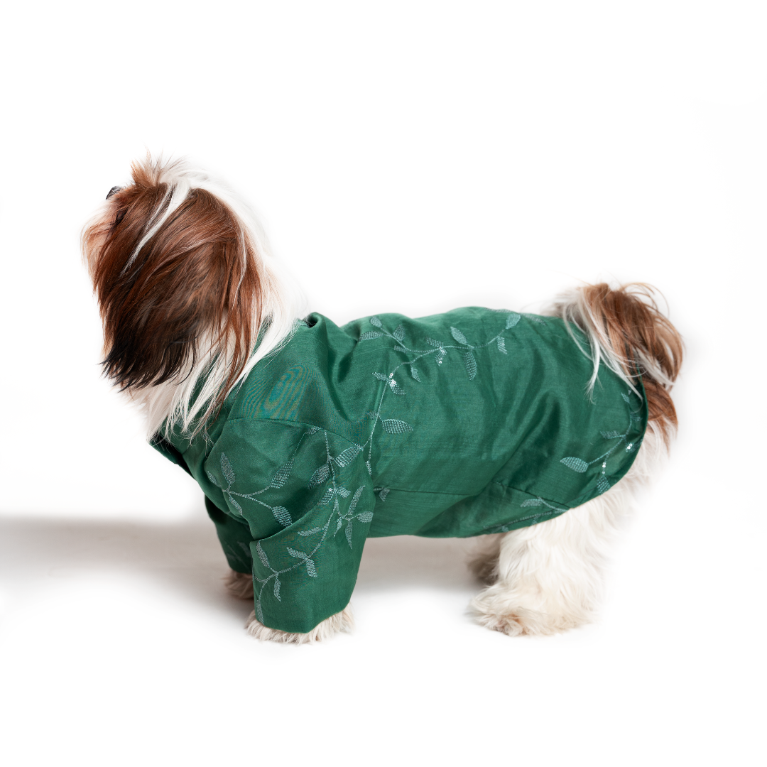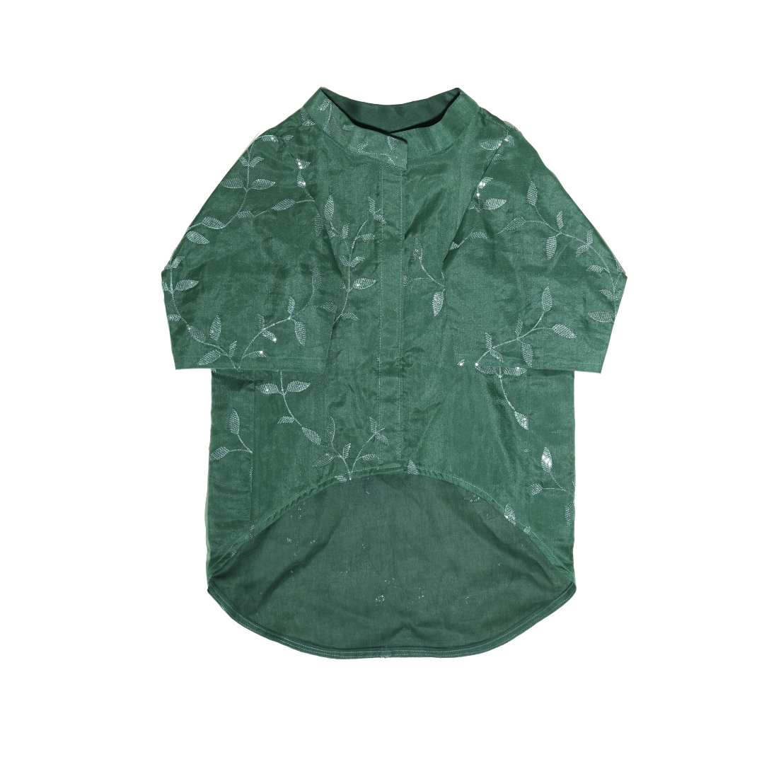 Dress your handsome in our Dark Green Sequence Kurta. Extremely soft to touch and comfortable to wear. Let your pupper bask in sustainable fashion clothing!