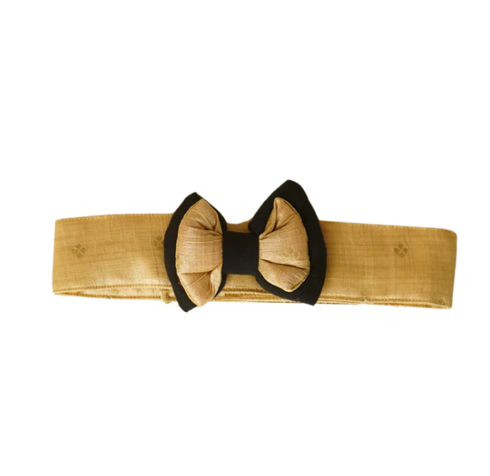 Get your little furriend/floof a handcrafted piece of naturally dyed handloom Gold Silk Collar with Bow. It is extremely soft, comfortable and easy to put on and is a unisex item.