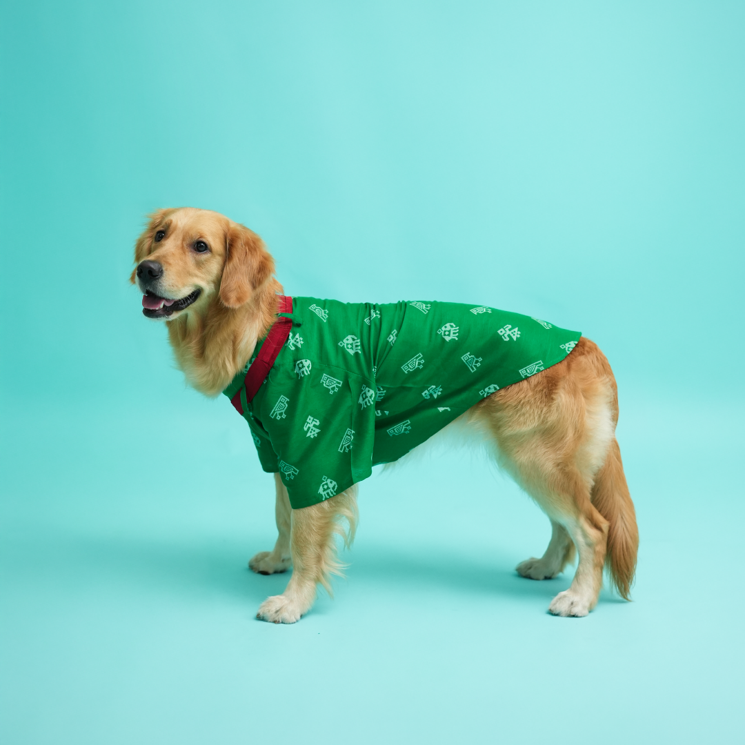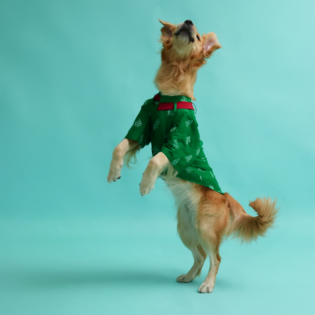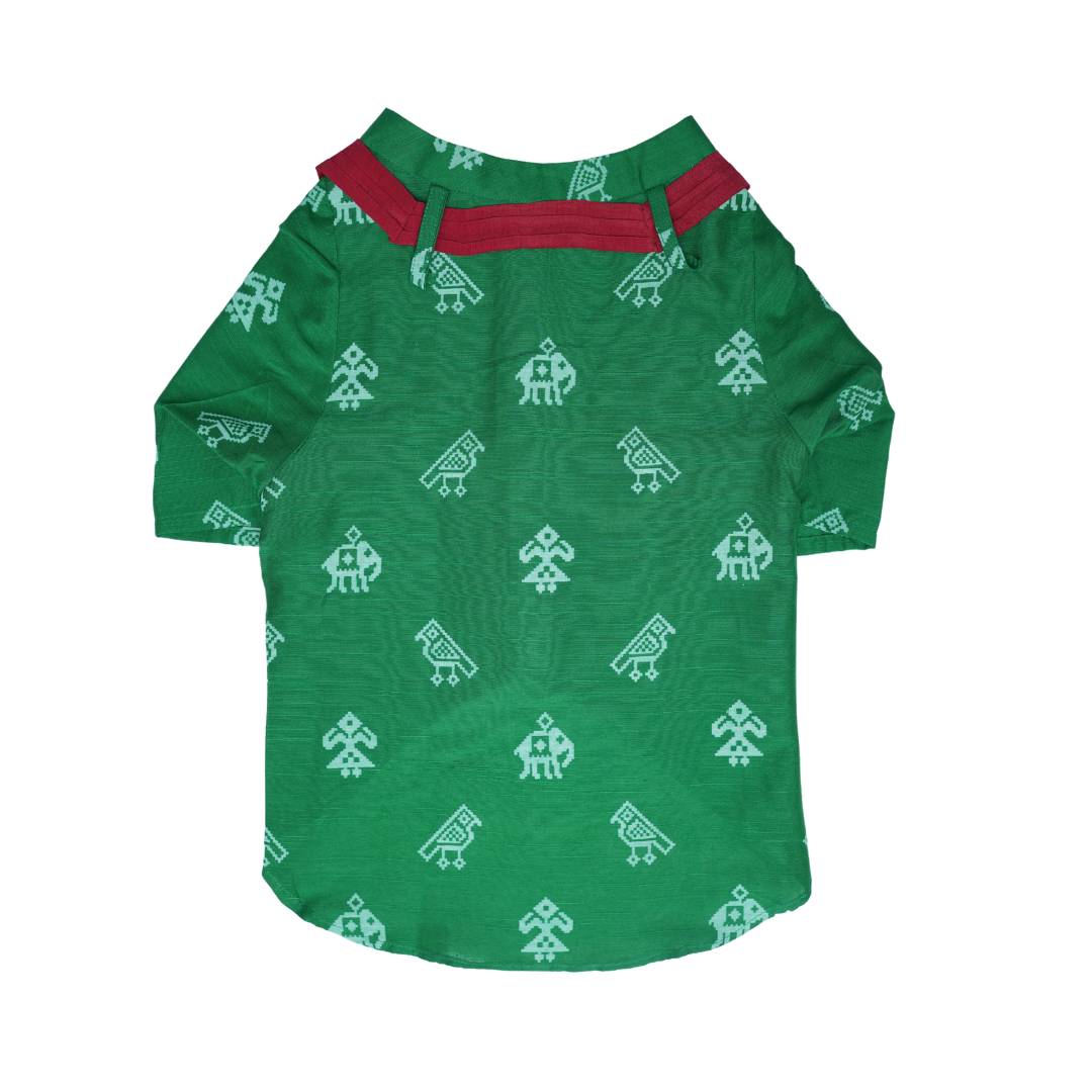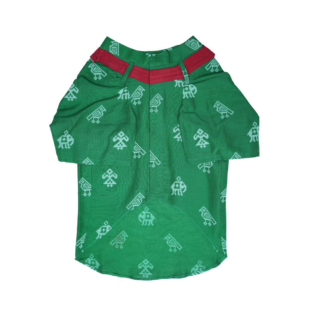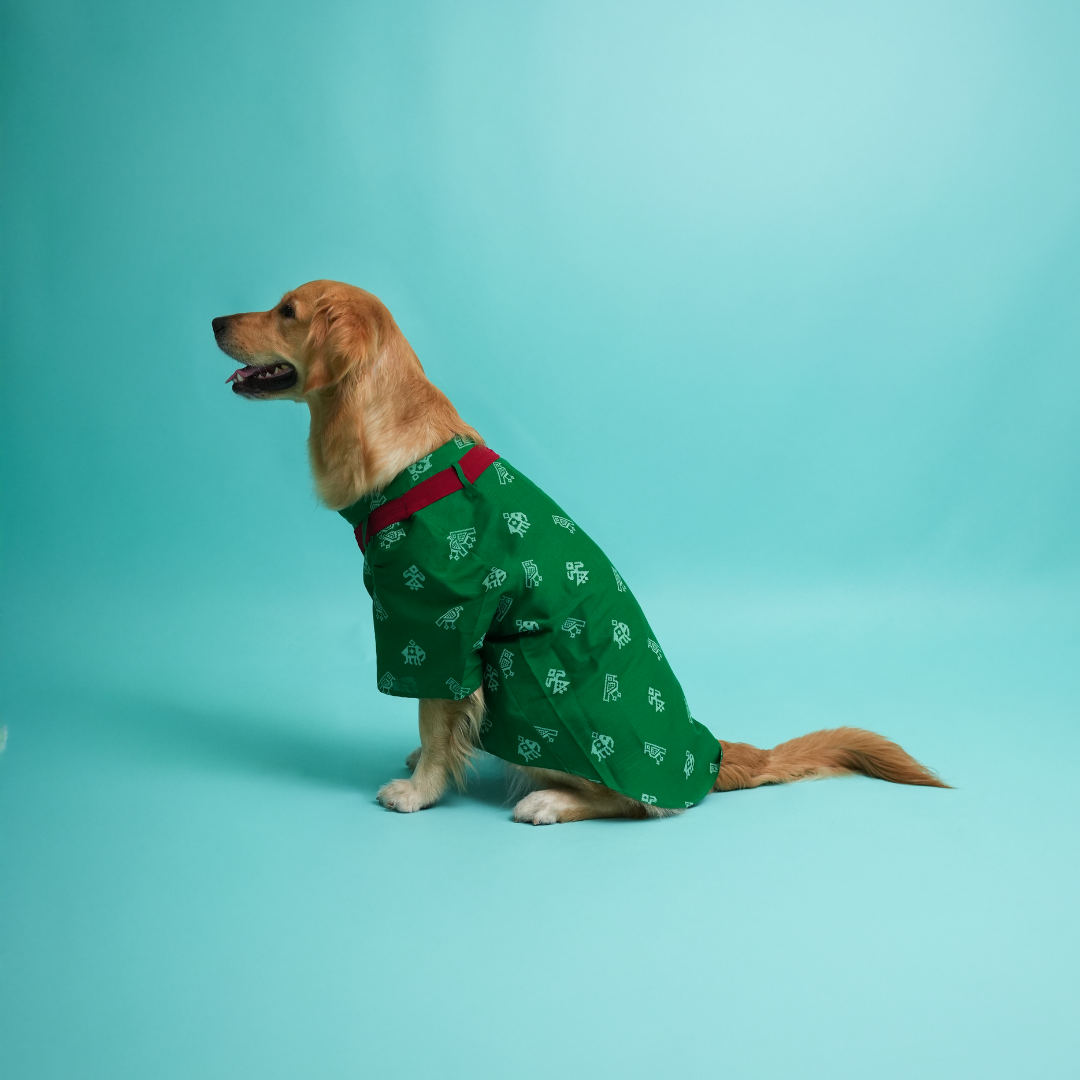 Dress your handsome in our Green Cotton Patola Print Kurta. Extremely soft to touch and comfortable to wear. Let your pupper bask in sustainable fashion clothing!