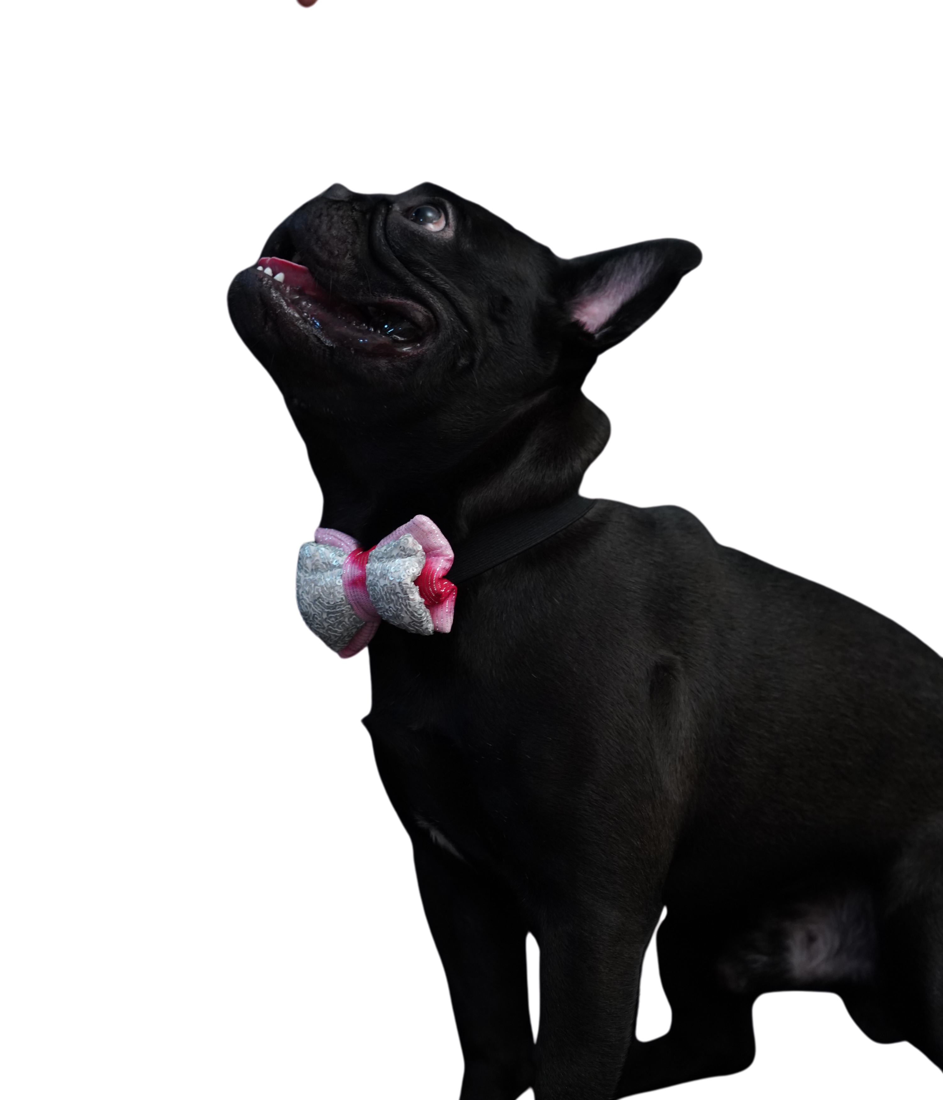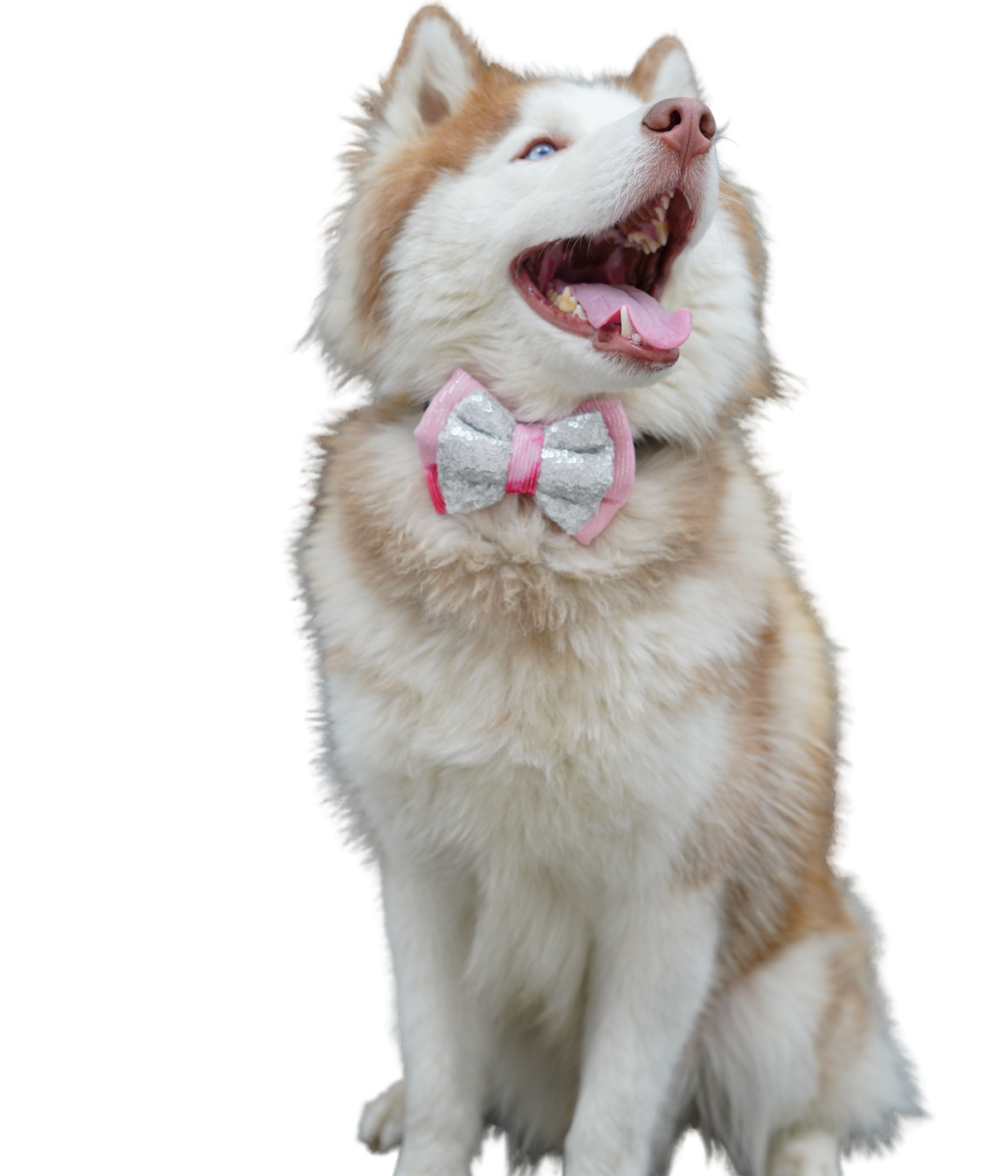 Your charming floof deserves an elegant bow. This classy Pink & Silver Elastic Bow is easy to put on & your pupper is ready to dazzle the crowd!