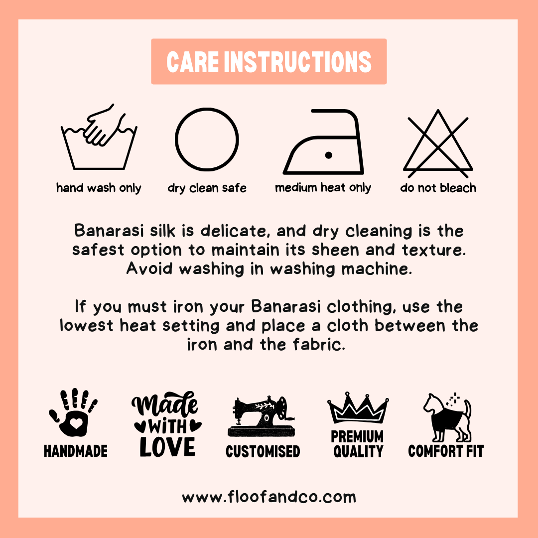 DRYING: Hang to drip dry your handwoven garments in well-ventilated evening settings or shade since direct sunlight causes colour fading.